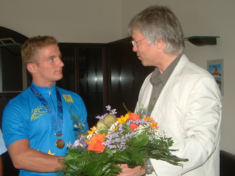 Dr. Norbert Vornehm nicht nehmen, den EM-Titelträger in seinem Arbeitszimmer zu empfangen, um ihm wie auch seinem Trainer Jochen Wilhelm die Glückwünsche der