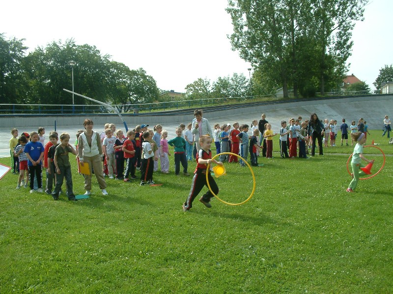 Zum zweiten Mal nutzte die Hans-Christian-Andersen Grundschule in Debschwitz die vom SSV Gera 1990 e.V. gebotene Möglichkeit, zur Durchführung ihres Schulsportfestes. Die über 200 Schülerinnen und Schüler waren mit Begeisterung bei der Sache, konnten sie doch in zahlreichen sportlichen Disziplinen ihr Können unter Beweis stellen. "Wir haben das Angebot gern angenommen, können wir doch mit unseren Schülern das gesamte Areal ohne Einschränkungen nutzen. Leider ist das in anderen Sportstätten häufig nicht so gegeben. Da darf man das..., da kann man dorthin nicht..., heißt es oft. Unsere Schüler sind schon diszipliniert, aber an eine Leine kann man sie auch nicht nehmen. Für unsere Viertklässler ist die Radrennbahn ja nicht unbekannt, führen wir doch schon seit vielen Jahren im Rahmen der Kooperationsvereinbarung Schule-Sportverein die dritte Sportstunde auf der Radrennbahn durch", so Hauptsportlehrerin Brigitte Plietzsch. Auf dem Programm standen, unter Berücksichtigung der Altersklassen, unter anderem Zielwurf, Zonenweitwurf, Geschicklichkeitslauf, Schlussweitsprung, Staffelwettbewerbe, 2-Felder-Ball-Turnier, Radfahren und Ergometertest. Hilfe zur Absicherung der sportlichen Aktivitäten an den einzelnen Stationen erhielten die Grundschullehrer durch Schülerinnen der 9. Klasse aus der Debschwitzer Regelschule. 08.06.2006 - www.ssv-gera.de
