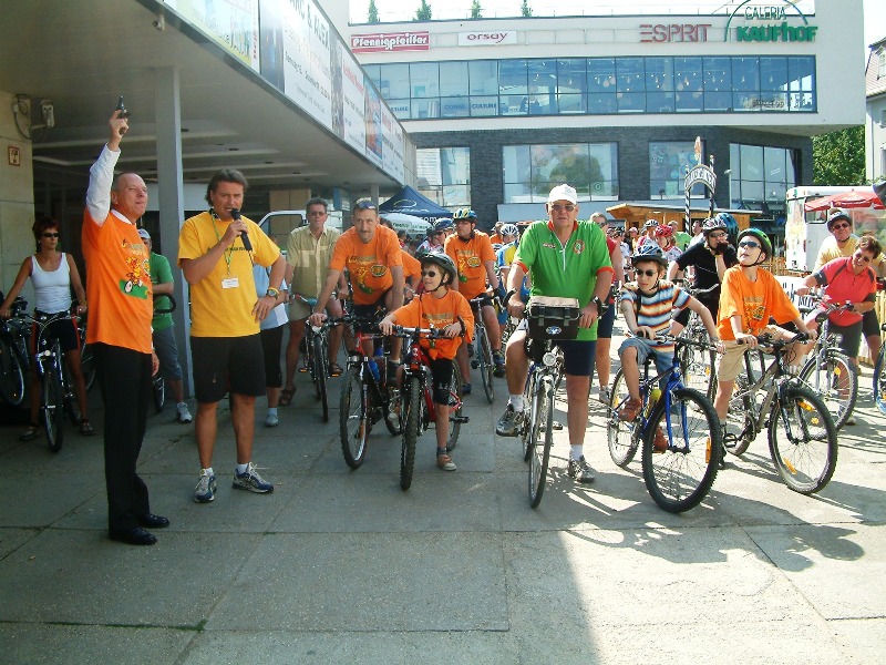 Als um 10.00 Uhr der Startschuß durch den Vorstandsvorsitzenden der Sparkasse Gera-Greiz Wolfgang Reichert gegeben wurde, setzten sich mehr als 200 Radfahrer in Bewegung zur 2. BARMER-LÖWENTOUR. Zeitgleich starteten zwei kleinere Gruppen in Ronneburg und Weida unter Führung des Geraer Radfahrerclubs Solidarität und begleitet vom Förderkreis Radsport Gera e.V., um sich in Collis zu treffen und im großen Pulk auf die weitere Runde über Ronneburg und Trebnitz zurück nach Gera zu begeben. So waren es dann doch über 250 Teilnehmer, die der Geraer Radsporttradition die Treue hielten und Begeisterung fürs Radfahren zeigten.