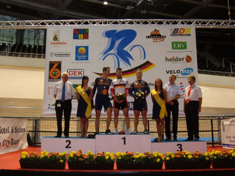 Bis zum Samstagabend fuhr Robert in das Halbfinale und traf dort auf seinen Teamkameraden C.Bergemann. Als U23-Fahrer mit den Deutschen Sprinteliten, Ex-Weltmeistern, dem Olympiasieger und dem amtierenden Deutschen Meister um die Plätze 1-4 zu fahren, genoß Robert mit Respekt. Sein Ziel war erreicht und er war sich sicher, daß er in den weiteren Finalläufen viel lernen kann. Das tat er dann auch und die Jungs sowie das Wettkampfgericht schenkten sich untereinander nichts. Wir erlebten Robert mit Fehlern, taktischen Finessen, Kampfgeist, Antrittsstärke und vor allem mit offensichtlicher Freude am Sprint.