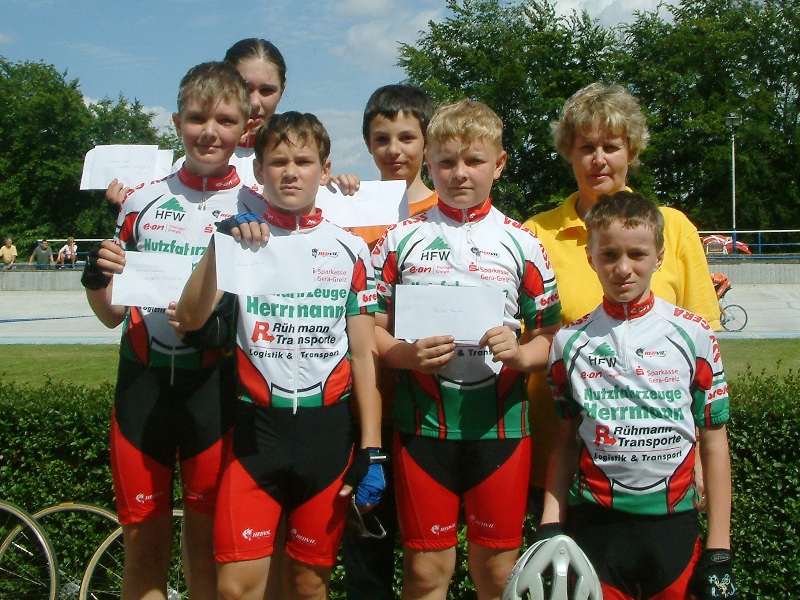 Der Förderkreis Radsport Gera e.V. unterstützte auch diesmal den SSV-Radnachwuchs, um bei der Südpfalz-Tour zu starten. Während des 6.Laufes zum "eropräzisa Nachwuchs-BahnCup 2007" und der Thüringer Landesmeisterschaft im Punktefahren der Schülerinnen und Schüler überreichte Ute Holfert, Mitglied des Vorstandes, die Schecks an die teilnehmenden Sportler.