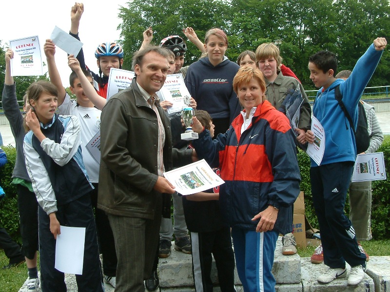 Groß war der Jubel bei den Schülerinnen und Schülern der Debschwitzer Regelschule, die beim 3.Geraer Tag des Radsports um den 'Olaf Ludwig Pokal' mit 29 Schülerinnen und Schülern das größte Teilnehmeraufgebot auf den 500 m Zeitfahrkurs schickten, was ihnen in den Klassenstufen fünf und sechs jeweils eine Geldprämie von 100 Euro einbrachte. Zusätzlich sicherten die Sechstklässler Lisa-Marie Wenning (1.), Danny Zureck (3.) und Marcel Trendelburg (4.) für ihre Schule den Olaf-Ludwig-Pokal. In der Klassenstufe fünf ging der Pokal durch Kevin Niebisch, Lukas Hüllner und Michael Lewin an das Karl-Theodor-Liebe Gymnasium.