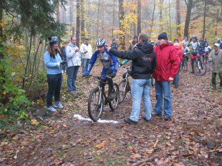 Mit dem 1. November hat nun die MTB-Strecke im Geraer Stadtwald auch ihre Feuertaufe erfolgreich bestanden. Den Startschuss zum Eröffnungsrennen gab der Olympiateilnehmer von Peking Robert Förstemann. Als erster ging der Greizer Fabian Thiel, der am Stützpunkt Gera sportlich betreut wird, auf den 1,8 km Rundkurs, der beim Rundenrekordrennen die drittschnellste Zeit erreichte. Bei den Lizenzfahrern musste er sich dann aber Thomas Reichardt vom SSV Gera 1990 geschlagen geben, der 2,5 Sekunden schneller war. Mit Christian Keil überbot aber ein Hobby-Fahrer den bis dahin gehaltenen Rekord. Der Geraer war der einzige Starter, der mit 6:53,7 Minuten unter der sieben Minuten Marke blieb. Damit sicherte sich der 28-jährige den Pokal der Otto-Dix-Stadt Gera, der ihm von Bernd Kriebitzsch, Fachdienstleiter Sport und Bildung, und dem Ehrengast Robert Förstemann überreicht wurde. "Es war schon ganz schön anstrengend. Bergauf musste ich teilweise mein Rad tragen, da ging einfach nichts mehr", meinte Christian Keil, der am Tag zuvor die Runde dreimal abgefahren ist und schon damit gerechnet hatte, sich ganz vorn zu platzieren.