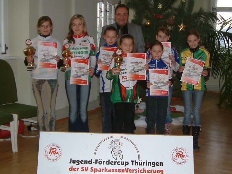 Mit dem Barocksaal im Geraer Naturkundemuseum hatte Dr. Kerstin Riemann, Fachwart Rennsport im Thüringer Radsport-Verband, ein würdiges Ambiente gefunden, für die Ehrung der erfolgreichsten Sportlerinnen und Sportler sowie Radsportvereine im Jugend-Fördercup Thüringen der SV SparkassenVersicherung 2008. "Gern haben wir auch 2008 die Förderung des Radsportnachwuchses in Thüringen unterstützt und wir werden auch im kommenden Jahr zum Radsport stehen und den Nachwuchs besonders unterstützen", so Peter Zill, Generalvertreter der SV SparkassenVersicherung, der gemeinsam mit Landesverbandstrainer Dr. Manfred Wandersleb die Ehrung vornahm.